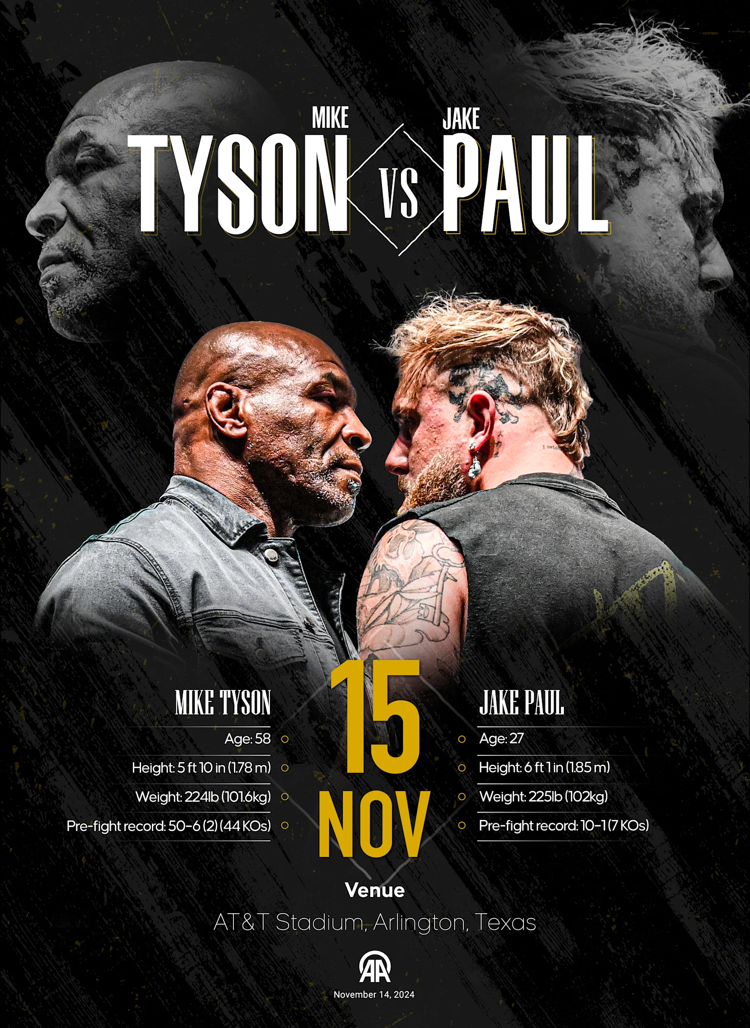 The bout is all going down this Saturday afternoon at the prestigious AT&T stadium in Texas, home of the NFL’s Dallas Cowboys, and is sanctioned as a pro-fight with some modifications.