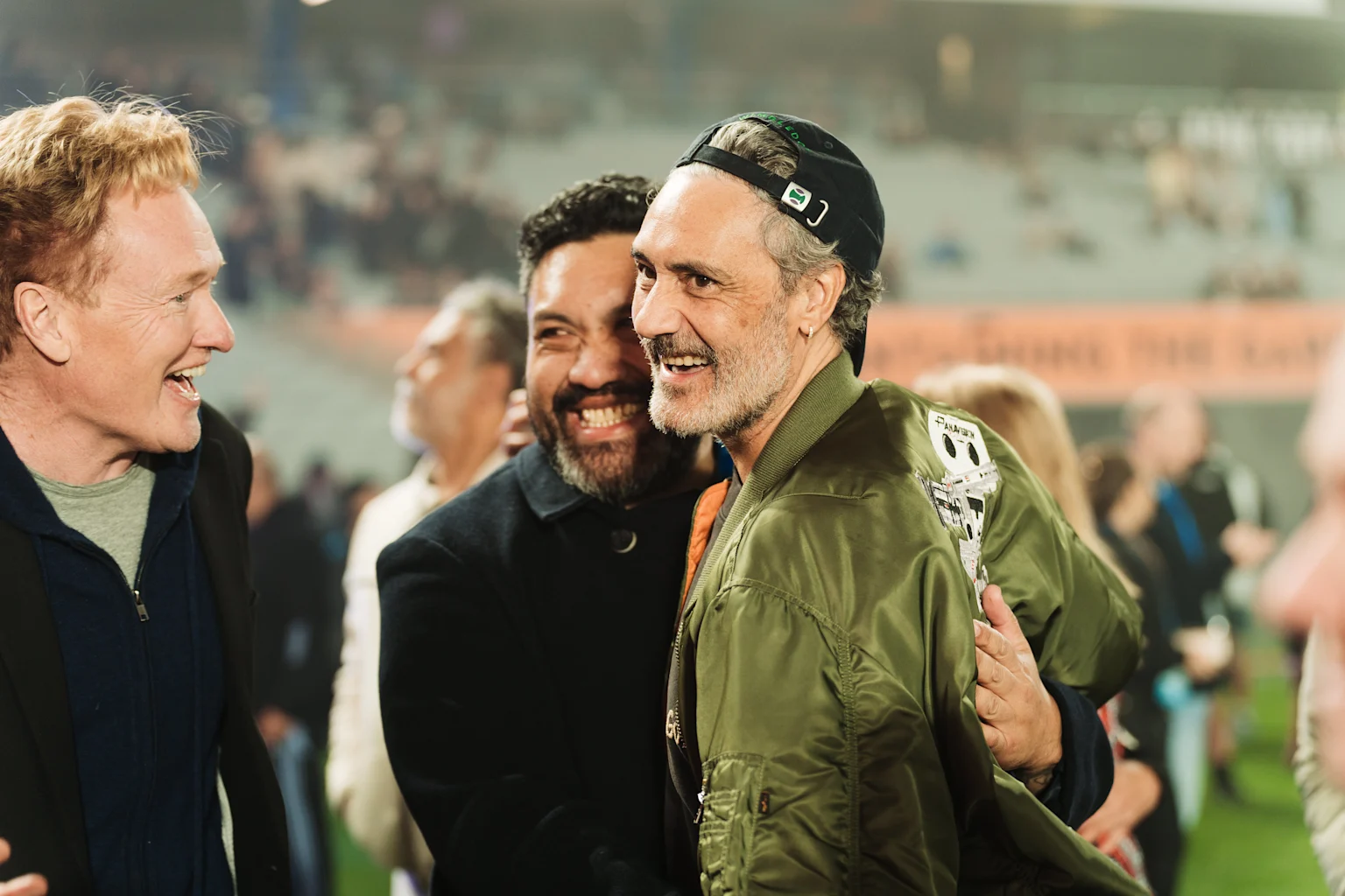 The haka event kicked off with Kiwi artists like Six60, Paige, Rob Ruha, Alien Weaponry, Che Fu, Kings, and the Topp Twins hyping up the crowd, while celebs like Taika Waititi, boxer David Tua, and American TV host Conan O’Brien were spotted on the field.