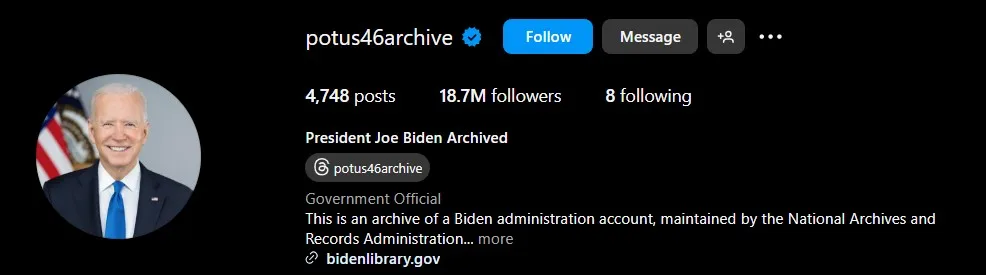 Just an hour ago, someone shared a screenshot on X showing the official POTUS Instagram account at 18.9 million followers. At the time of writing, that number has risen to over 20.1 million.