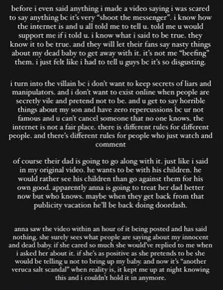 Veruca then seemed to turn on her own social media following, claiming they didn't support her after persuading her to spill the tea.