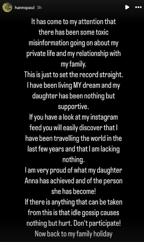 The latest update in the ongoing saga has seen Anna's dad respond to the claims, "setting the record straight" on his own Instagram stories.