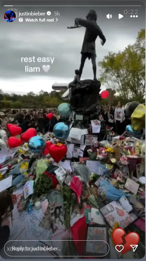 Justin, shared a fan-made video montage of the floral tributes and messages laid in Liam's memory, with the caption: "Rest easy, Liam," alongside a white heart.