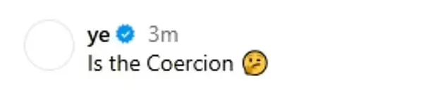 An hour after reports surfaced about his reported split from wife Bianca Censori, Kanye took to Instagram to share an AI definition of the word "coercion" alongside a statement reading: "Is the coercion" as well as a thinking face emoji.
