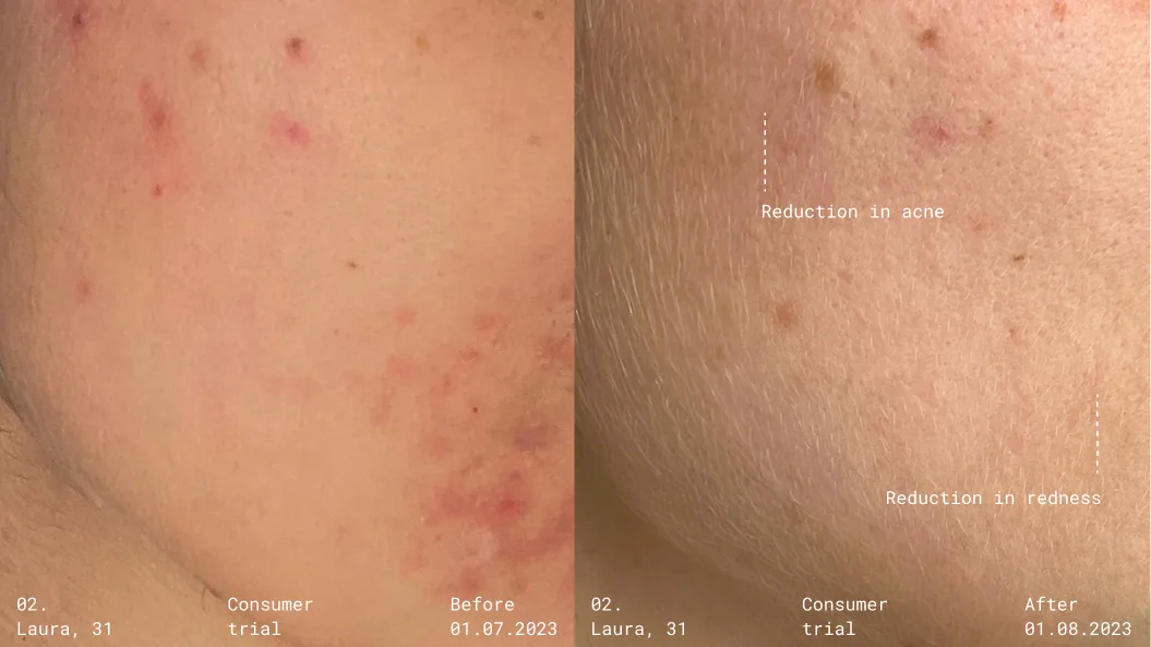 The before and after shots are pretty impressive, and so are the stats - with people who trialled the serum in clinical tests seeing a 58 - 81% reduction in issues like blemishes, rough and flaky skin, blackheads, oiliness and ingrown hairs.