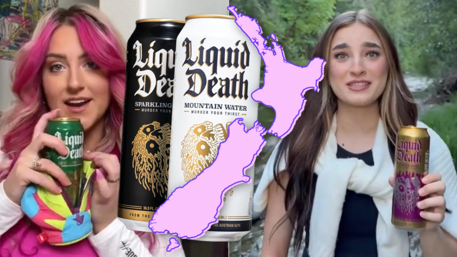 The mega-viral Liquid Death water is finally in NZ so you can get your influencer on