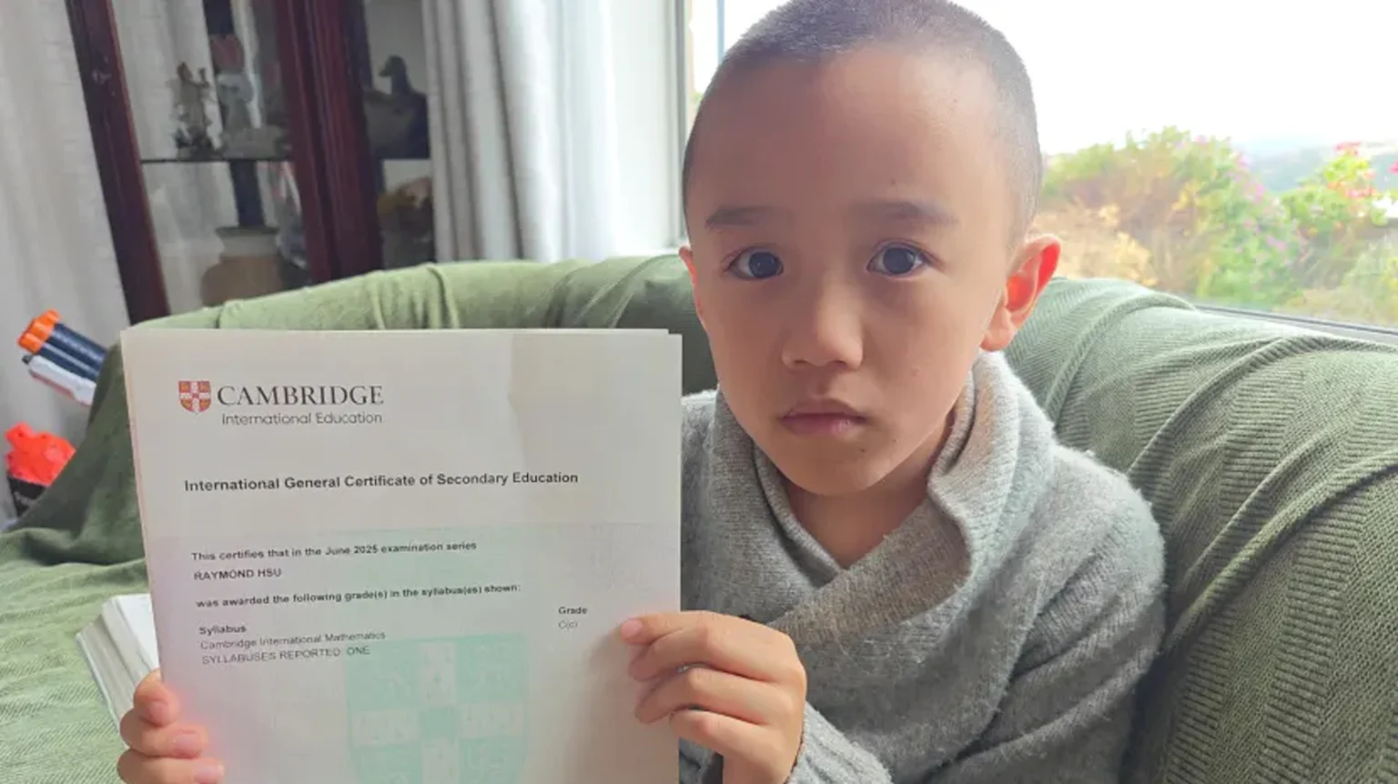 But Raymond isn’t just a "maths whiz" (though he’s pretty handy with an algebraic equation). He’s also been tackling Cambridge International exams, proving he can dissect Shakespeare and write essays on complex literature as well as crunch numbers.