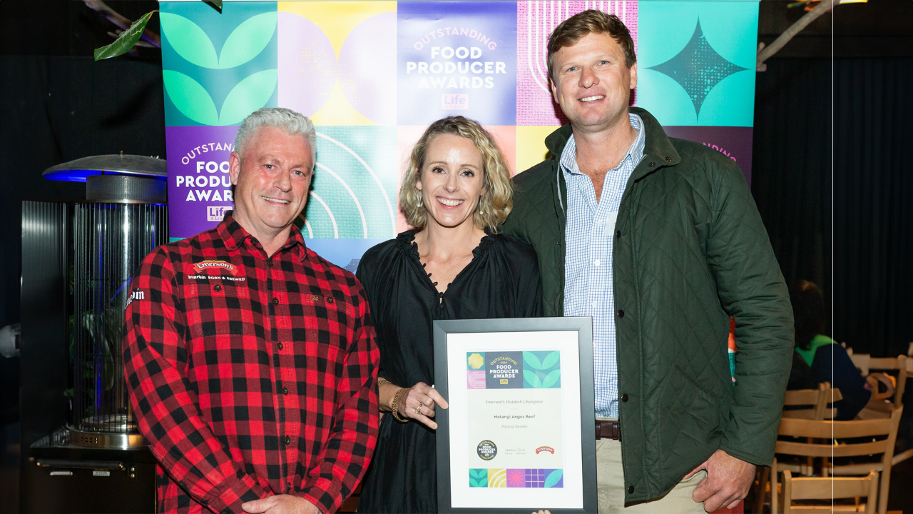 New Zealand's finest food producers were recognised on Thursday night where Nicky and Jamie Gaddum from Matangi Angus Beef were joint champions of the Oustanding Food Producer 'Paddock' Award.