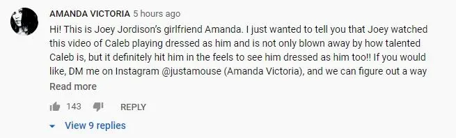 The video caught the eye of Joey Jordison's girlfriend, too - who commented under the video: