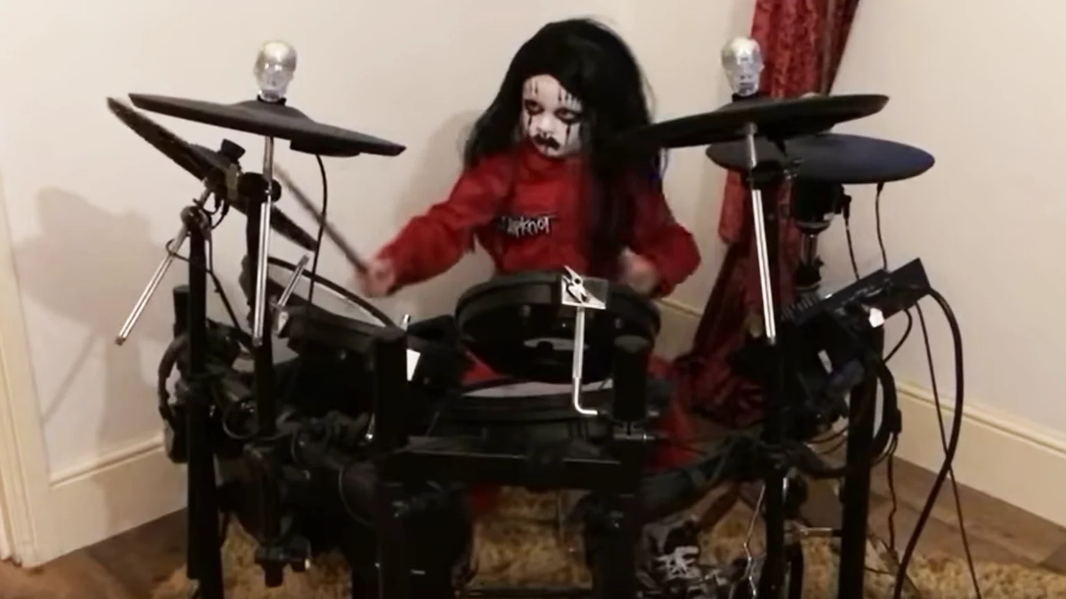 5-year-old boy plays drums to Slipknot's 'Before I Forget' dressed as Joey Jordison