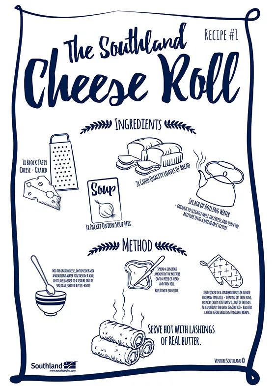 The first cookbook cheese roll recipe appeared in 1951, in Dunedin's Roslyn Church Jubilee Cookery Book. There was no recipe recorded in the north until the late 70s, so it looks the southern Kiwis have bragging rights for this one. It is believed the snack became popular down South "due to the cold climate and prevalence of soup as a meal option." Cheese rolls and soup sounds like the perfect remedy for those cold Dunedin days!