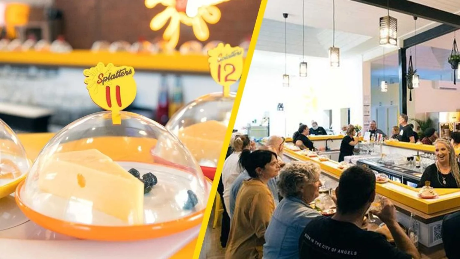 The restaurant, named 'Splatters cheese bar', is serving cheese plates between AUD $5-14 on 20m conveyor belt.