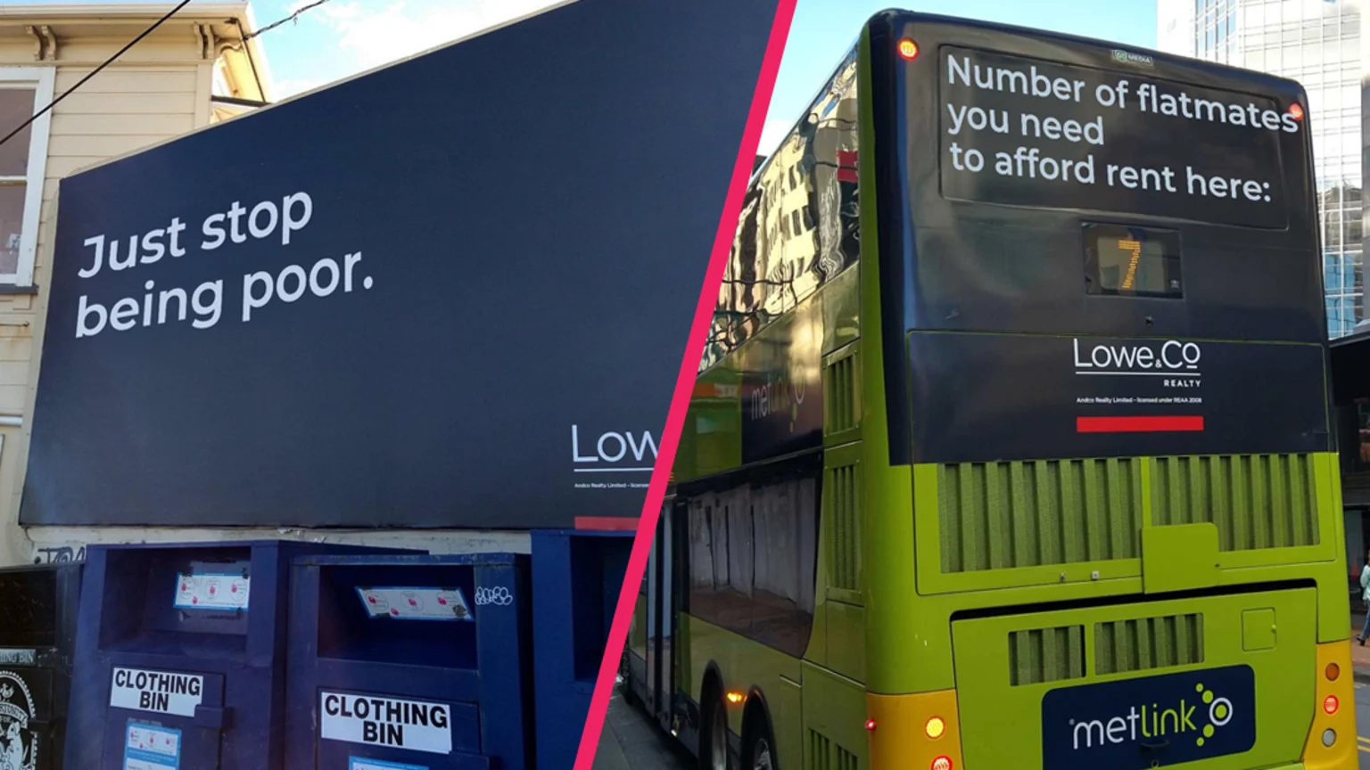 Nothing says 'housing crisis' like a billboard telling you to just 'stop being poor'.