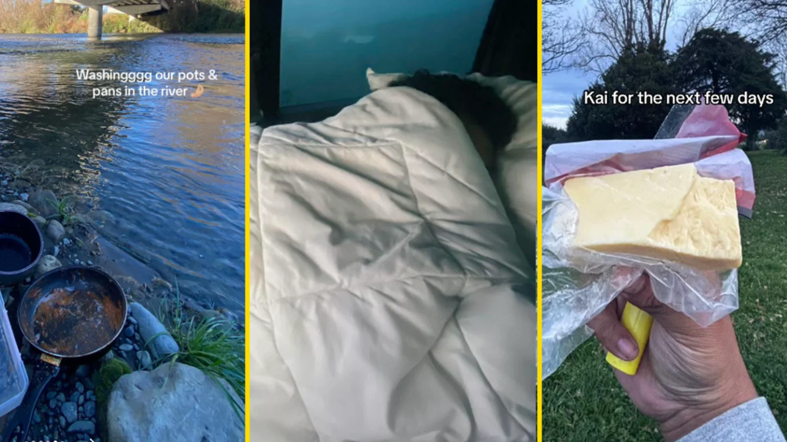 Like the moment they were pulled over by a cop. Upper Hutt police officer Cameron noticed the couple living out of their car and offered them a food parcel to help out.