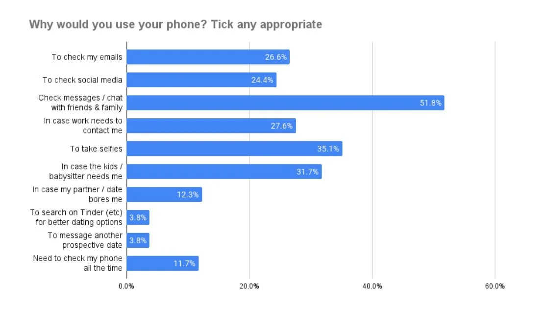 And let's not forget the brave 7.6% who openly admit to sneakily checking Tinder or messaging other potential dates, sheesh!