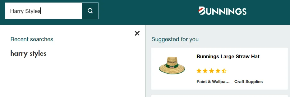When customers search for "Harry Styles" on the Bunnings website it now shows the "Bunnings Big Straw Hat" as the top result.