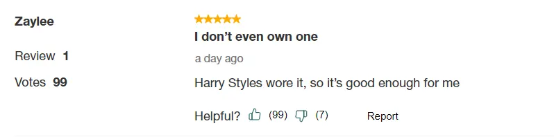 Don't believe me? One fan left a five-star review simply because of Harry's fashion influence.