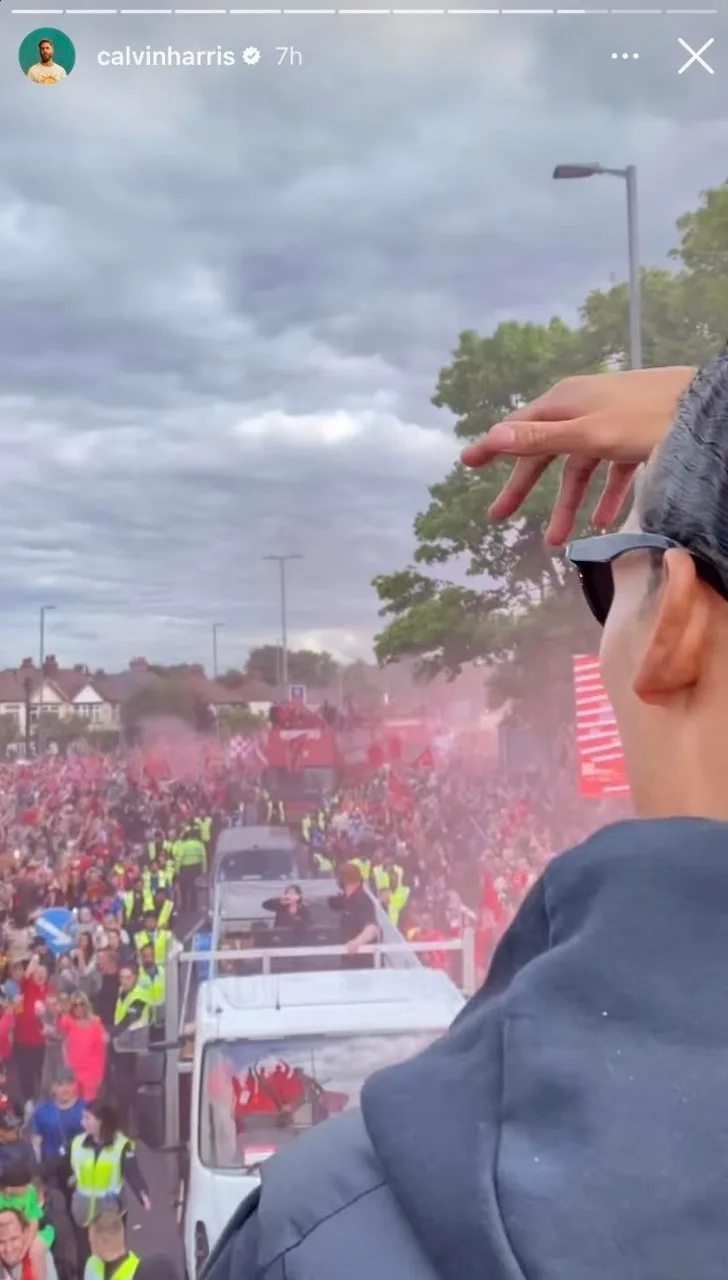 Liverpool FC celebrated winning the FA Cup last week by riding an open bus through the city, and none other than Calvin Harris was providing the soundtrack for the parade.