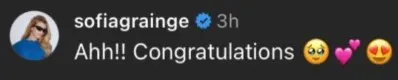 Sofia Richie (now Grainge), who dated Justin briefly in 2016, wrote: "Ahh!! Congratulations," on Justin and Hailey's announcement post.
