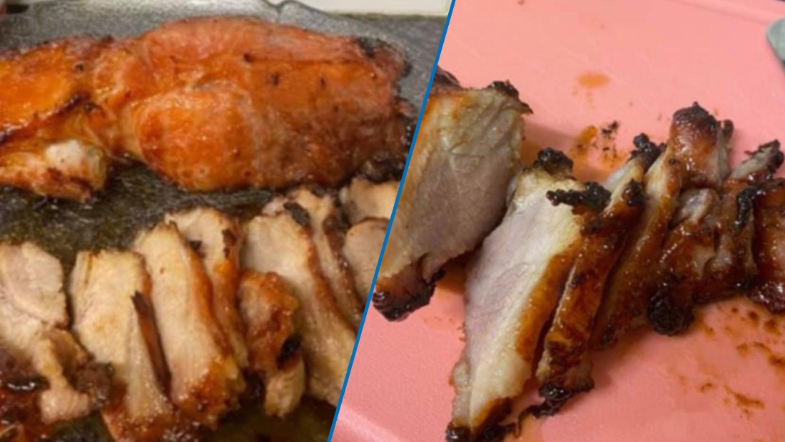 "I used just over a kilo of boneless pork shoulder, cut into two long portions and marinated in five tablespoons of char siu sauce (Lee Kum Kee brand) overnight," she said.