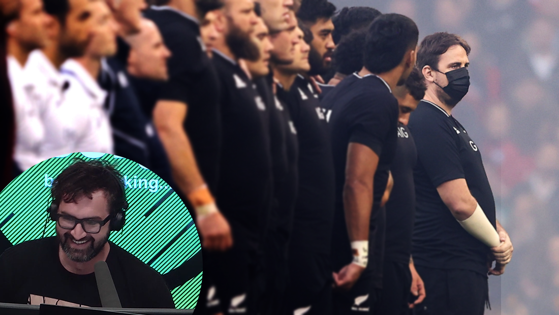 During the game between the All Blacks and Wales in Cardiff, Jarvo some how managed to not only get past security and onto the field but even join the line of All Blacks as they sang the national anthem.