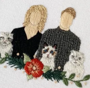 The embroidery was inspired by a portrait of Taylor, her ex-boyfriend Joe Alwyn and three cats - Meredith Grey, Olivia Benson and Benjamin Button.