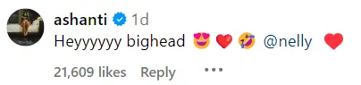 Ashanti even commented: "Heyyyyyy bighead," on an Instagram clip of the above podcast moment, so you know it's really real.