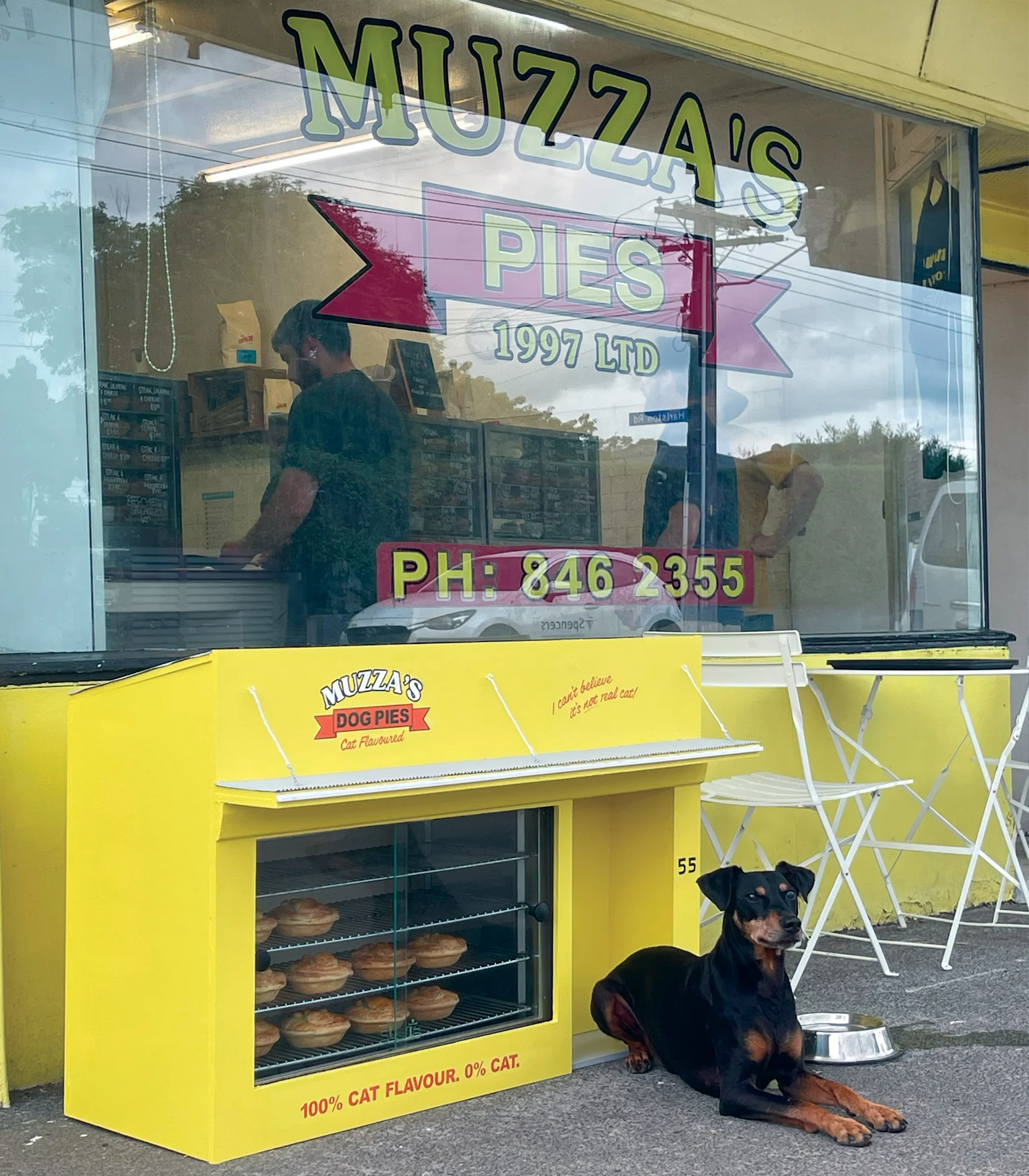 Muzza's Pies came up with the idea after noticing how many punters would give their dogs a bite of their pies - but don't panic, no cats were harmed in the making.