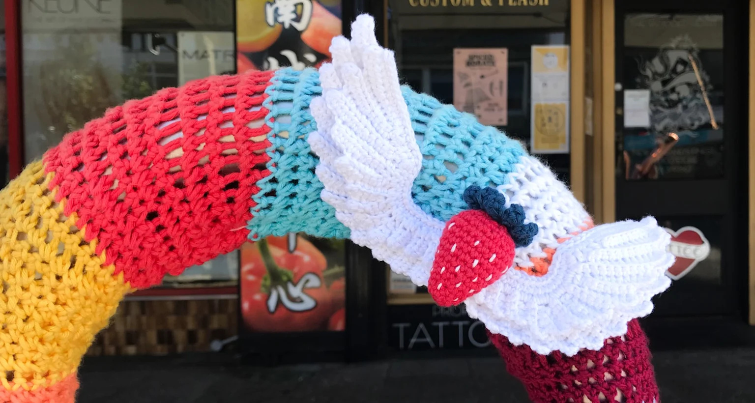 Take a stroll along K-Road to see the bike parking decorated with colourful yarnbombs; a mixture of pride flags and fun and funky designs.