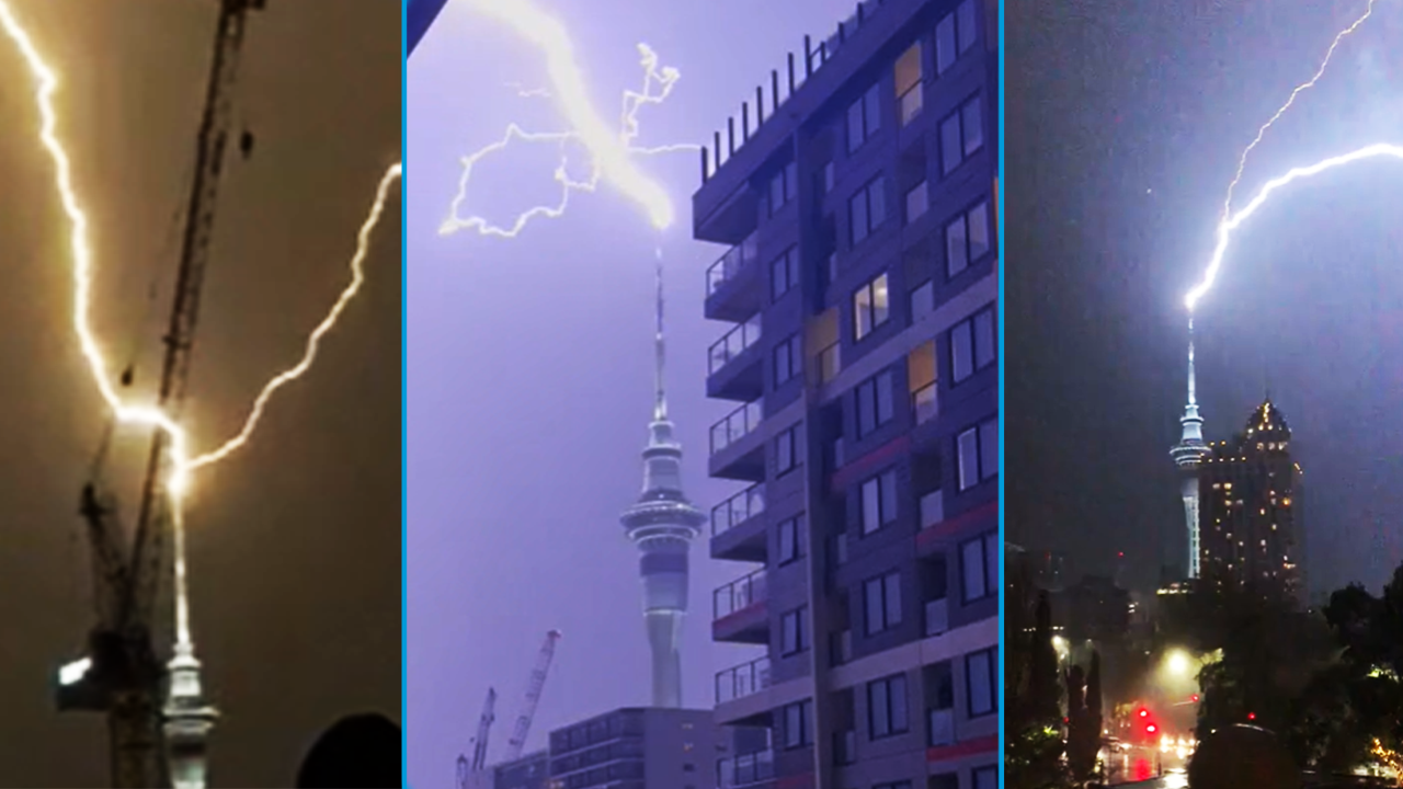Another video was captured from an apartment in the city centre, which is much closer to the Sky Tower, showing the massive flash the lightning made.