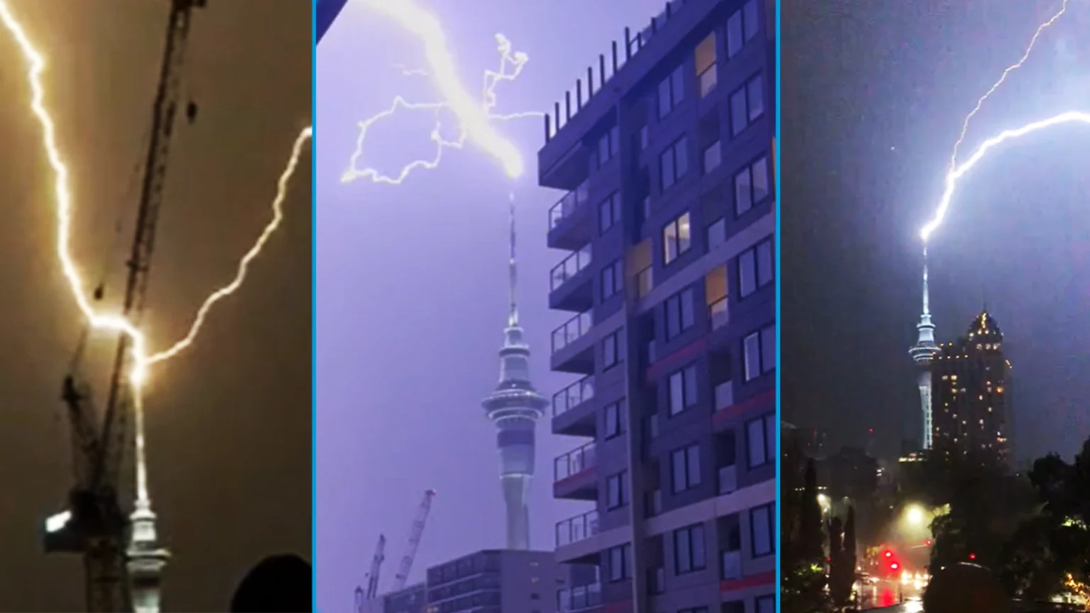Aucklanders share crazy footage of lightning striking the Sky Tower during storm