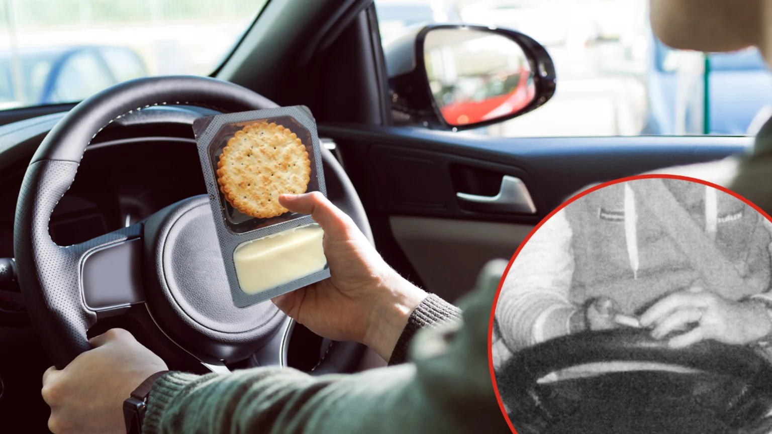 A bloke in Sydney has avoided a $350 fine after proving he wasn't using his phone while driving - instead, he was simply tucking into a Le Snak-like packet of crackers and cheese dip.