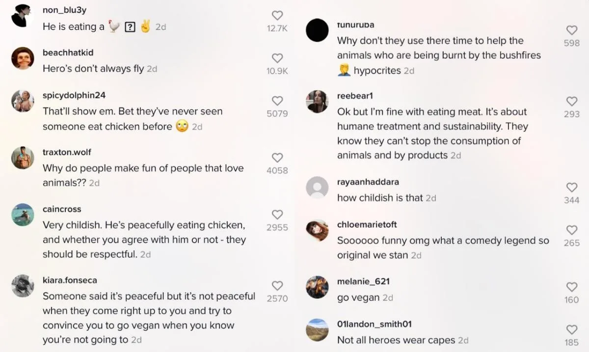 "I'm not vegetarian or anything but like you're just being childish," said one commenter.