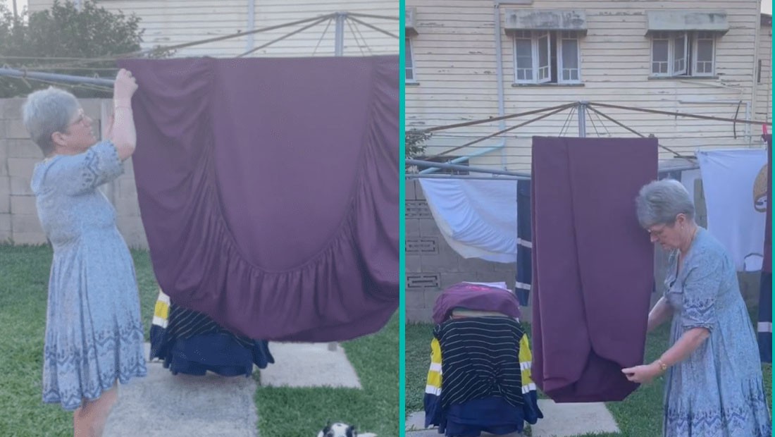 The video was captioned "Thanks mum for the tip on how to fold a fitted sheet," which has since racked up over 4 million views.