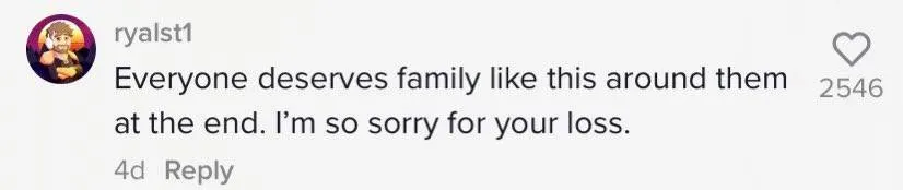 One commenter preached: "Everyone deserves family like this around them at the end. I'm so sorry for your loss."
