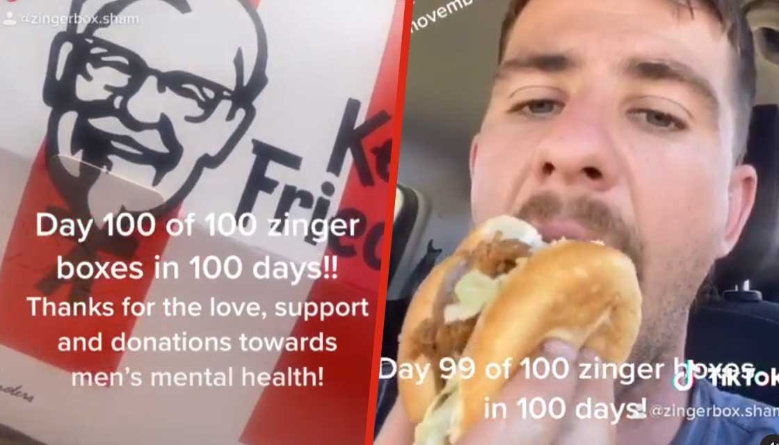 Known on Instagram and TikTok as zingerbox.sham, Zing King Murphy documented his journey every day - religiously binning a Zinger burger, three wicked wings, chips, potato and gravy and a drink, while still following a keto diet when he isn't zinging on.