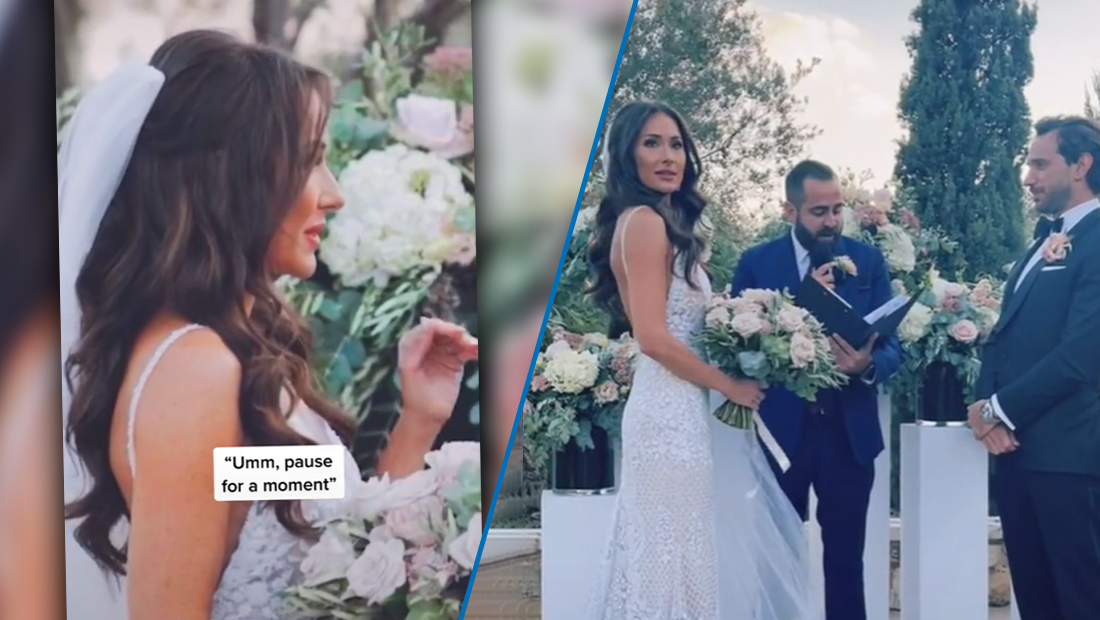 It's every bride's nightmare, an interruption mid-ceremony. But this bride ended up doing it to herself when she noticed something was off.