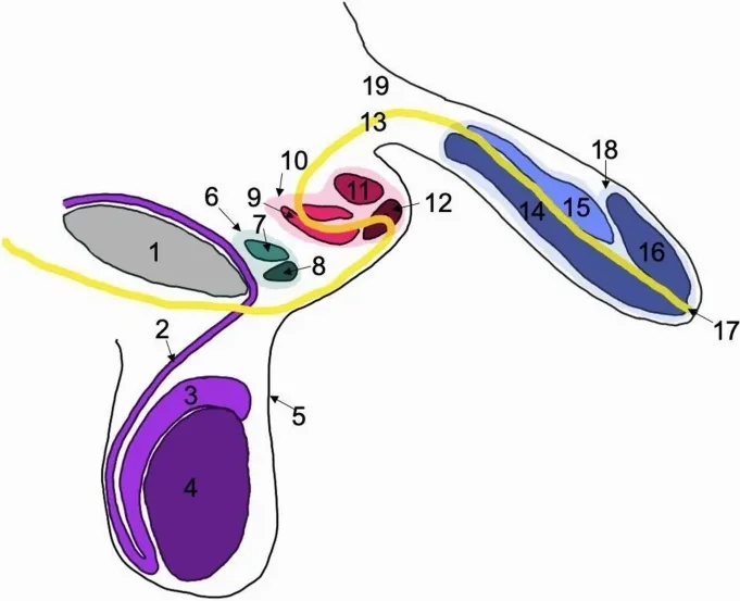 Looking at the diagram, the pink area labelled as number 10 shows the secondary penis, while the green area labelled as number 6 shows the third one. I’m sure you can figure out what the primary penis is.