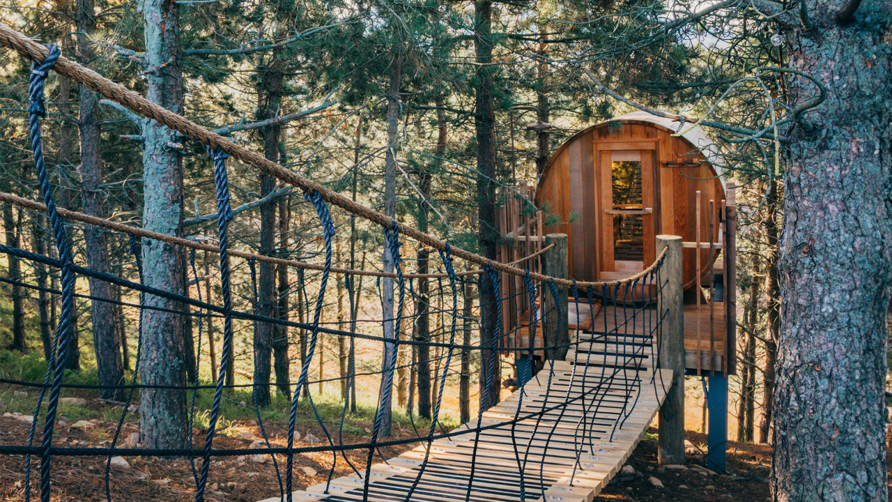 These aren't your average childhood structures, they are a sophisticated blend of rustic charm and modern amenities, including saunas and swing bridges that offer breathtaking views of the valley.