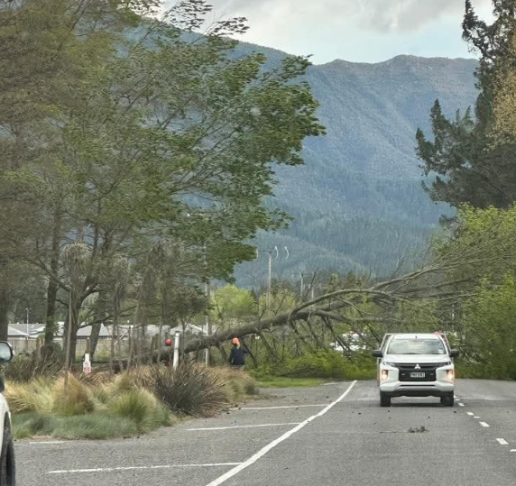 A large tree has been pictured blocking a main road in Hanmer Springs.