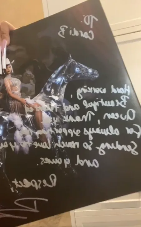 In a video clip posted to Twitter Cardi showed off her freshly signed copy of Bey's new 'Renaissance' album on vinyl.
