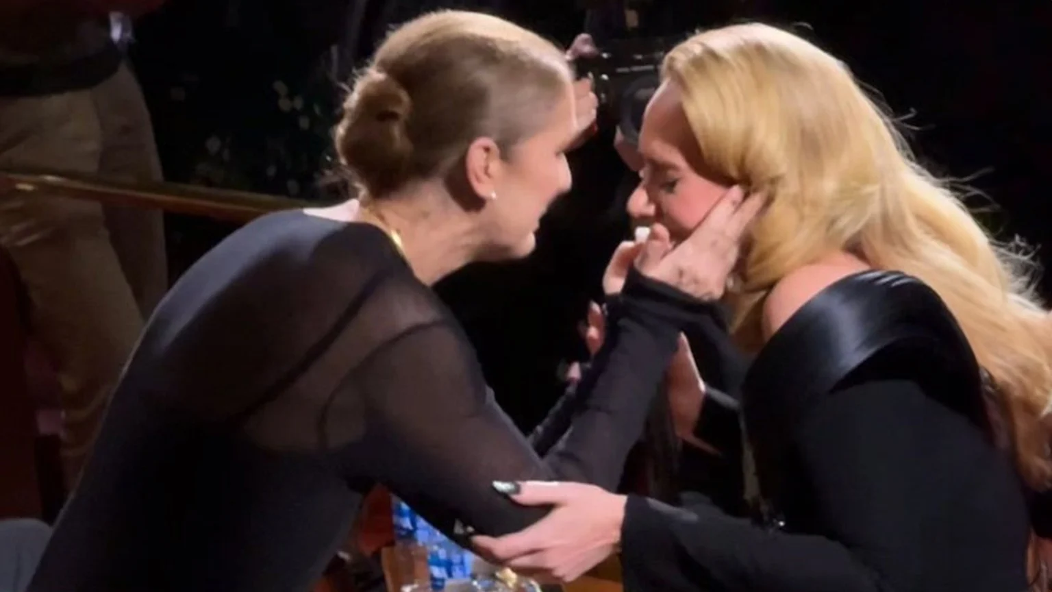 In fan footage posted on X, Adele becomes tearful before approaching Céline in the crowd.