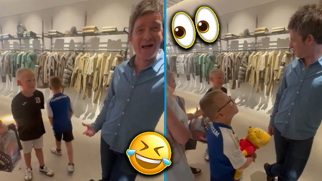 Fan Steve Sheward shared a video of him and his kids bumping into the Oasis legend while getting a bit of clothes shopping done.