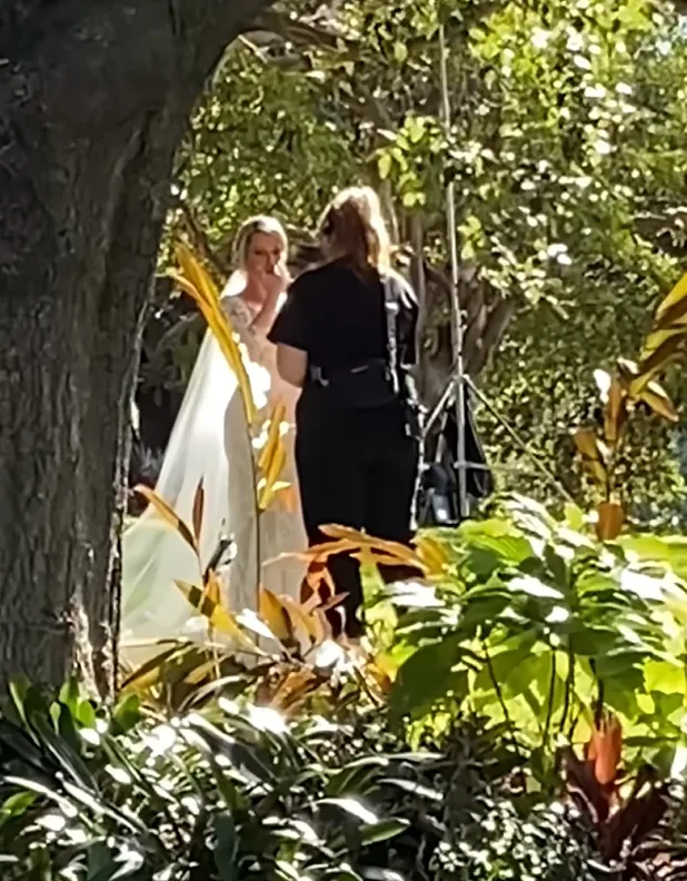 Production staff pulled out a white umbrella and followed Fox as he tried to capture a clip of an unknown bride walking in the park.