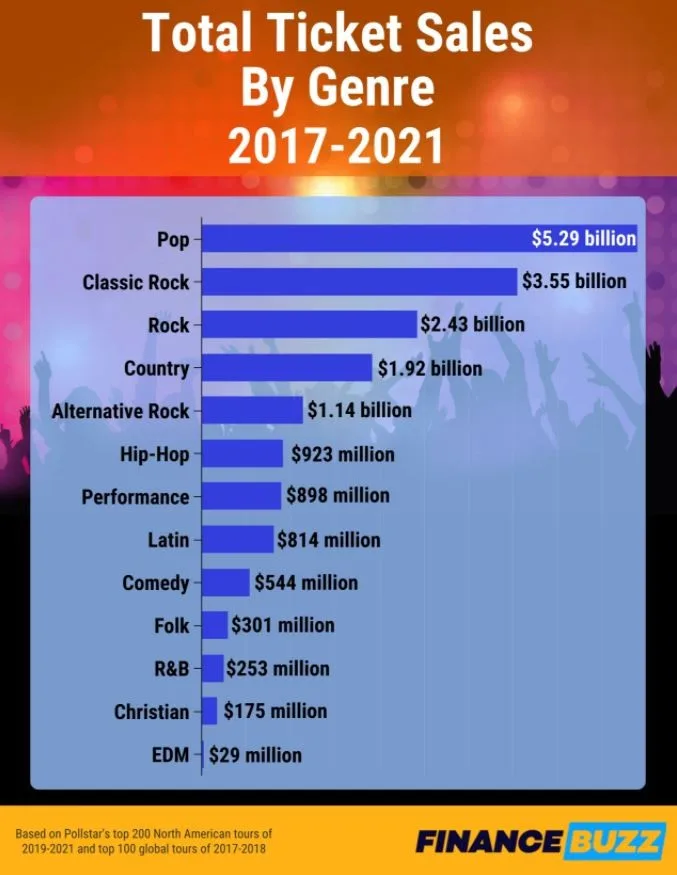 Classic rock looks to be the most expensive genre to see live, with fans paying on average $20 more for tickets than pop music lovers.