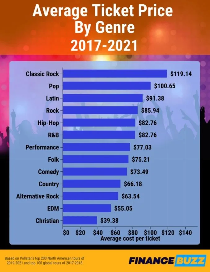 According to FinanceBuzz, a financial independence blog, the average price of a ticket to a classic rock gig was around of US$119.94, with pop stars selling tickets for closer to $100 each.