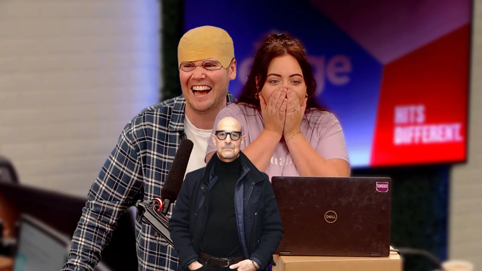 Dan actually came in earlier than both Meg and Clint and was sat in a meeting room with a bald cap, glasses drawn on with a vivid and terrible Stanley Tucci impression he had been practising the night before.