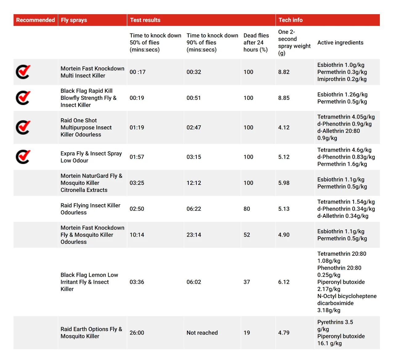 See below the tests Consumer NZ did on fly sprays, or read the full article from Consumer NZ here.