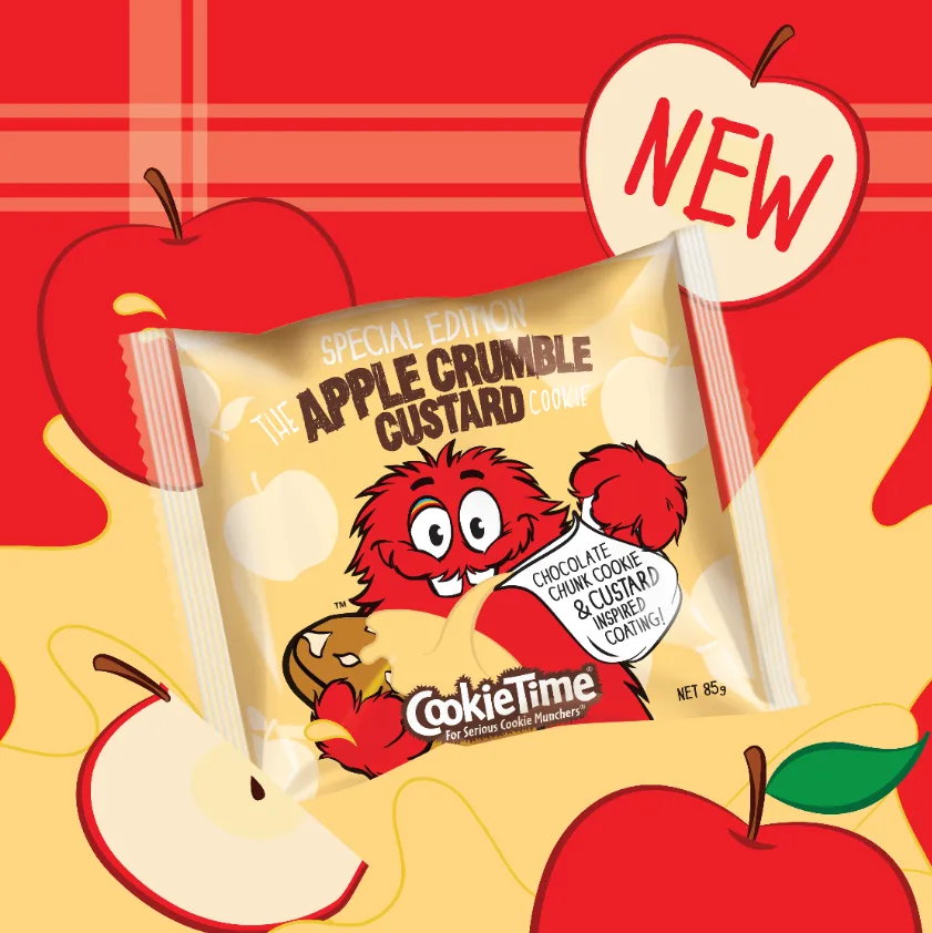 The Cookie Time Apple Crumble Custard Cookie and Cookie Sandwiches are available now in supermarkets up and down the country.