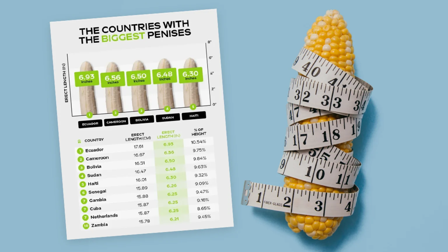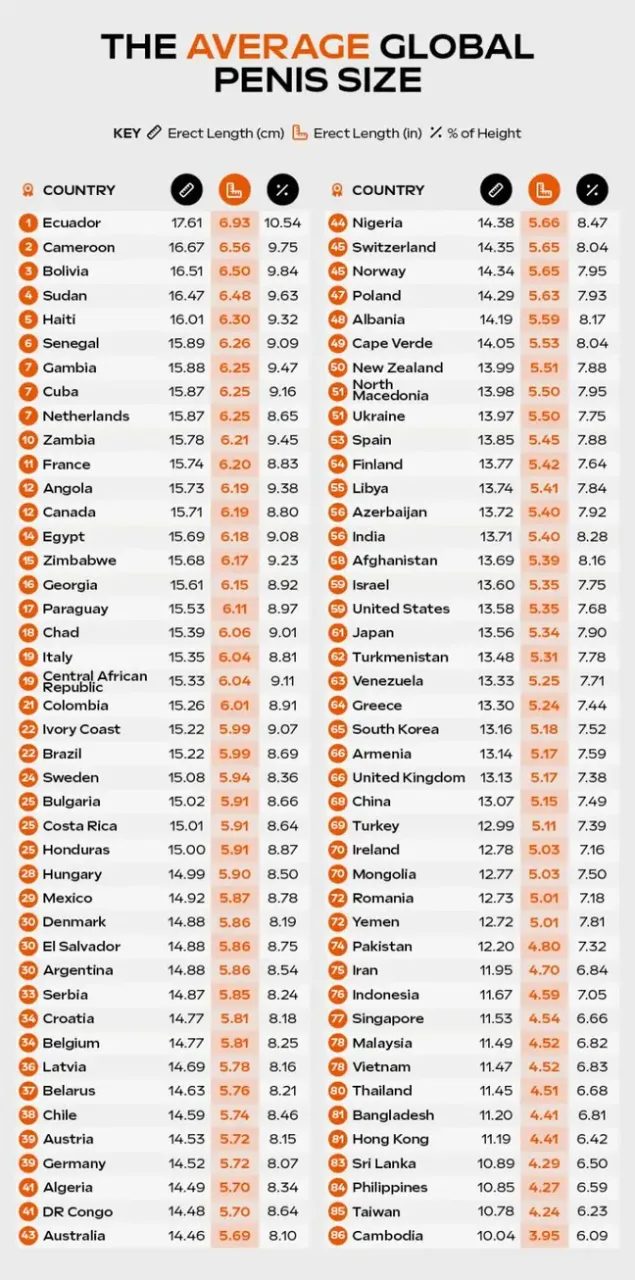The study found Ecuador came in at #1, with an average size of 17.6cm when erect. Holy hecka.