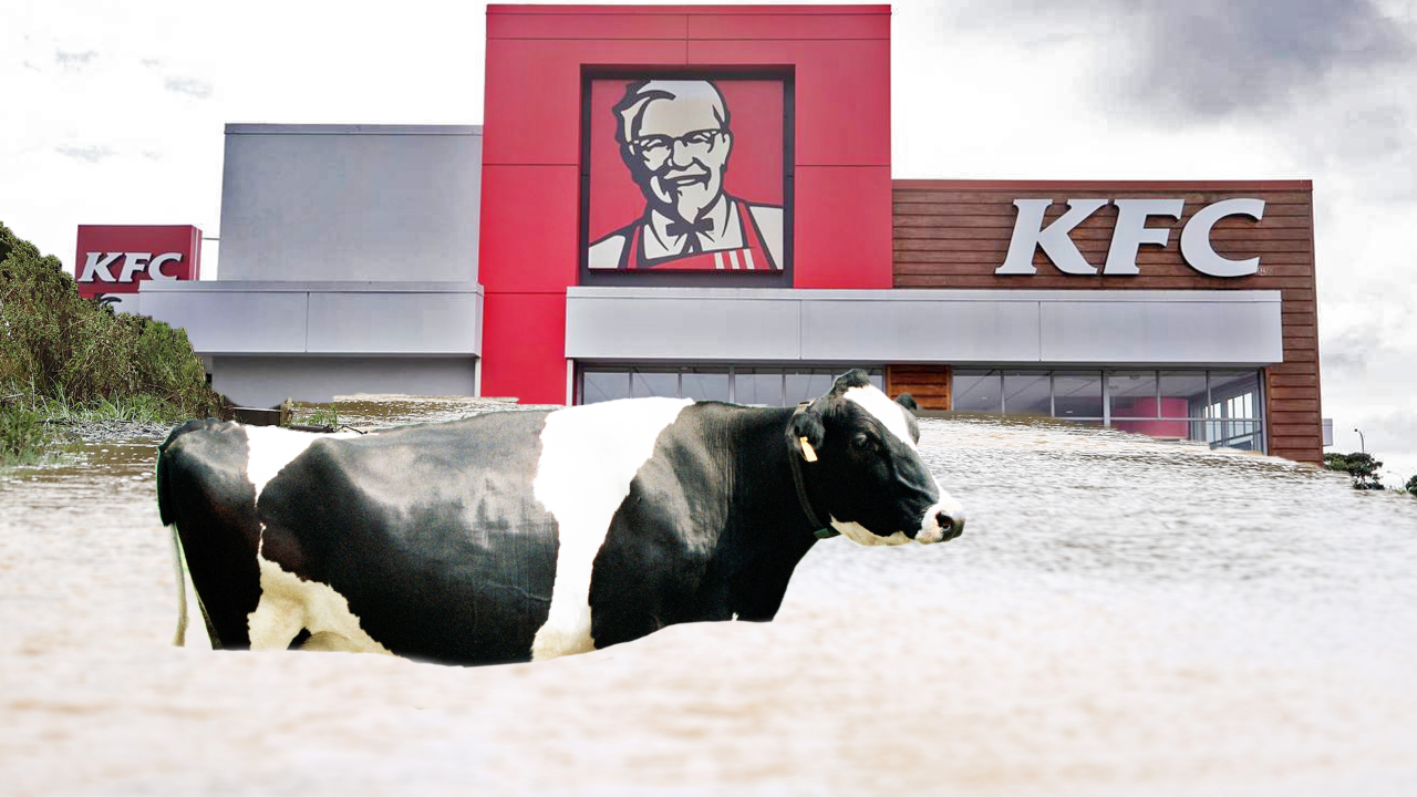 A cow in Te Puke has had one crazy night involving some fast mooooving floodwater, a high-speed chase, and a bit of K-Fry.
